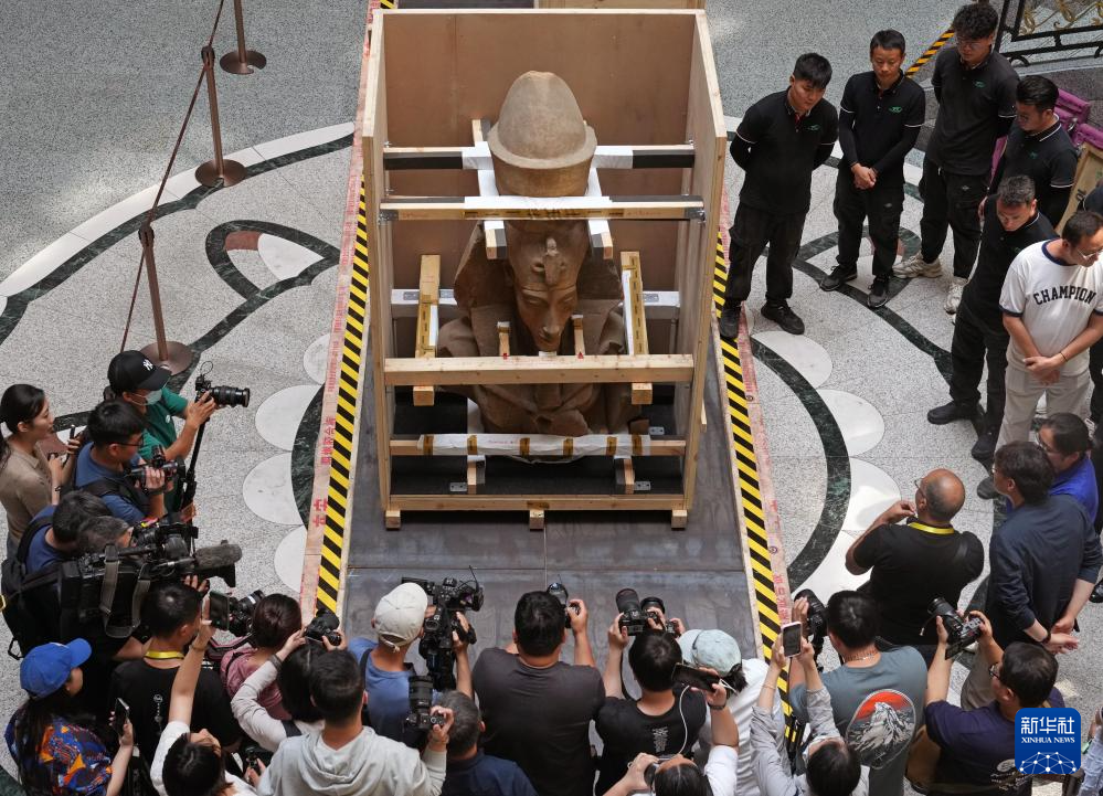 当日,来自埃及国家博物馆的埃赫那吞半身像、萨卡拉考古遗址的彩绘人形棺,率先在上海博物馆人民广场馆进行开箱亮相。