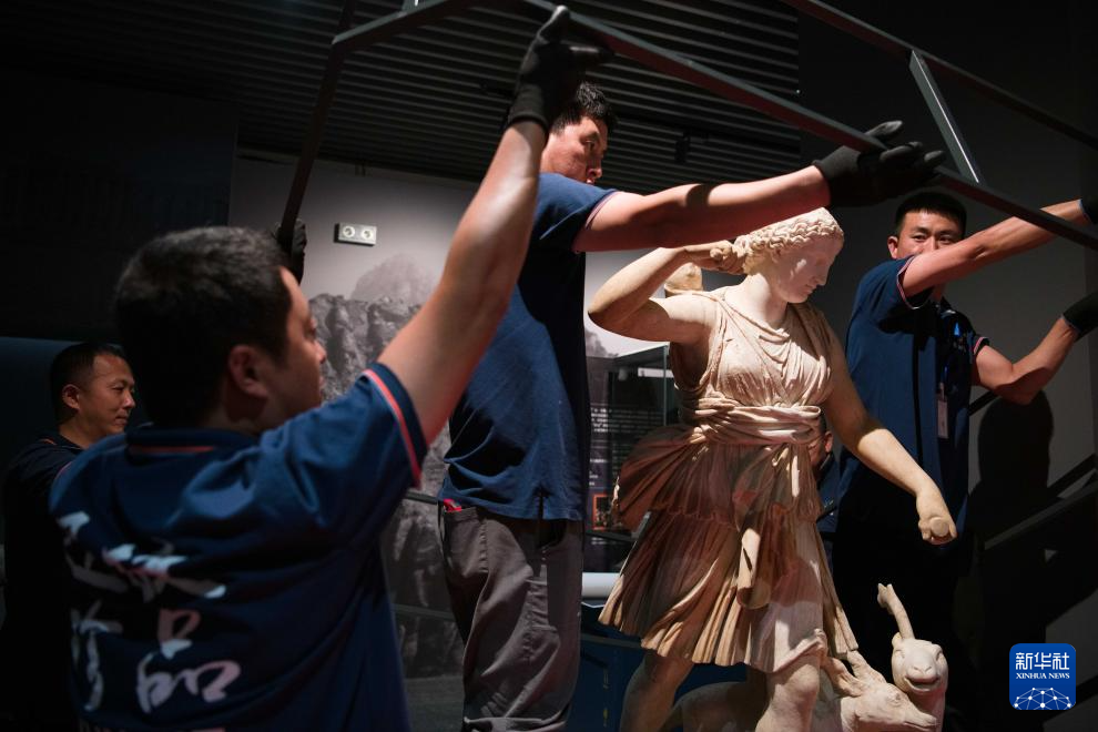 7月2日,开箱后的古希腊文物被工作人员移入展柜。