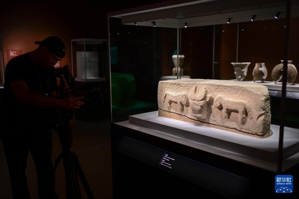 9月24日,媒体人员在香港故宫文化博物馆“中华文明溯源”特展媒体预展上拍摄。新华社记者 朱炜 摄