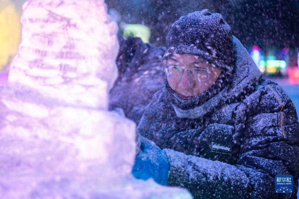 哈尔滨:冰雕高手秀技艺-新华网