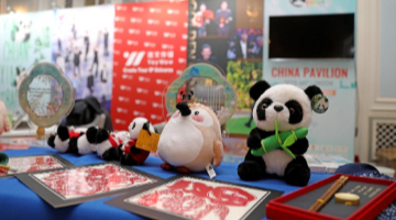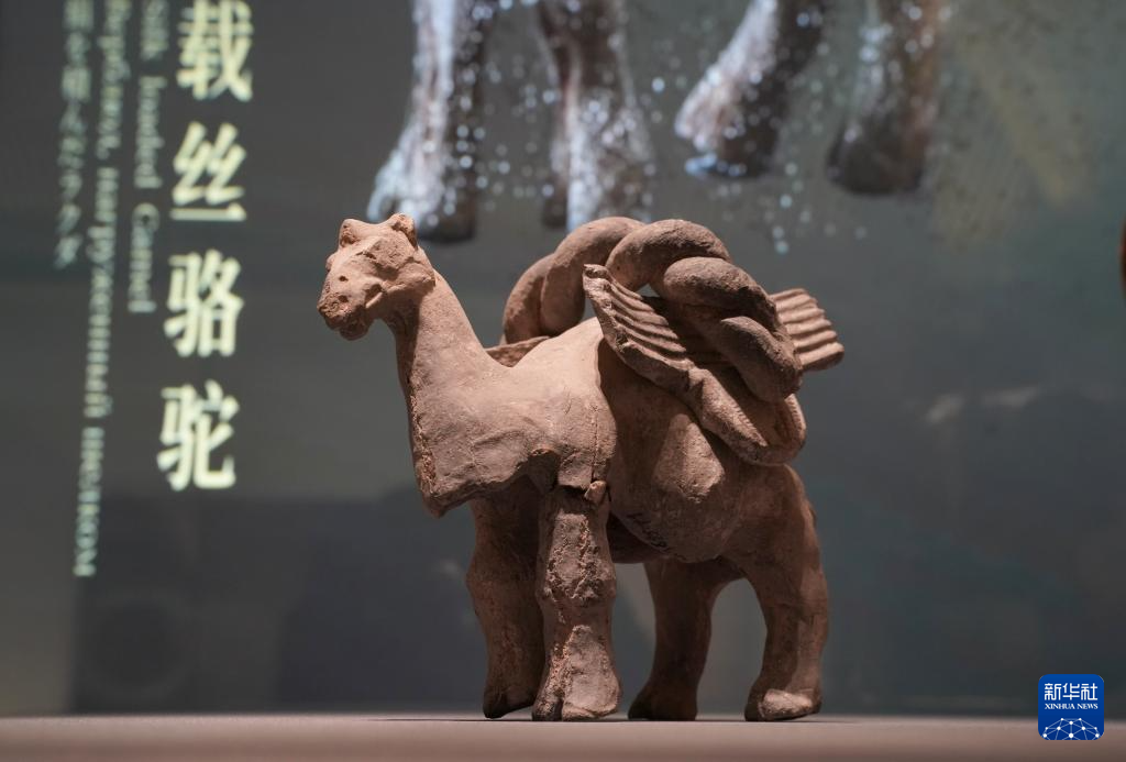 西部机场博物馆展出的北周文物彩绘陶载丝骆驼(2月26日摄)。