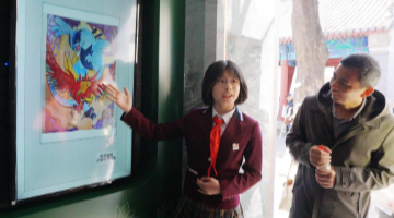 3月29日,观众在参观“如是莫高”敦煌艺术大展中展出的莫高窟第45窟的复刻版本。