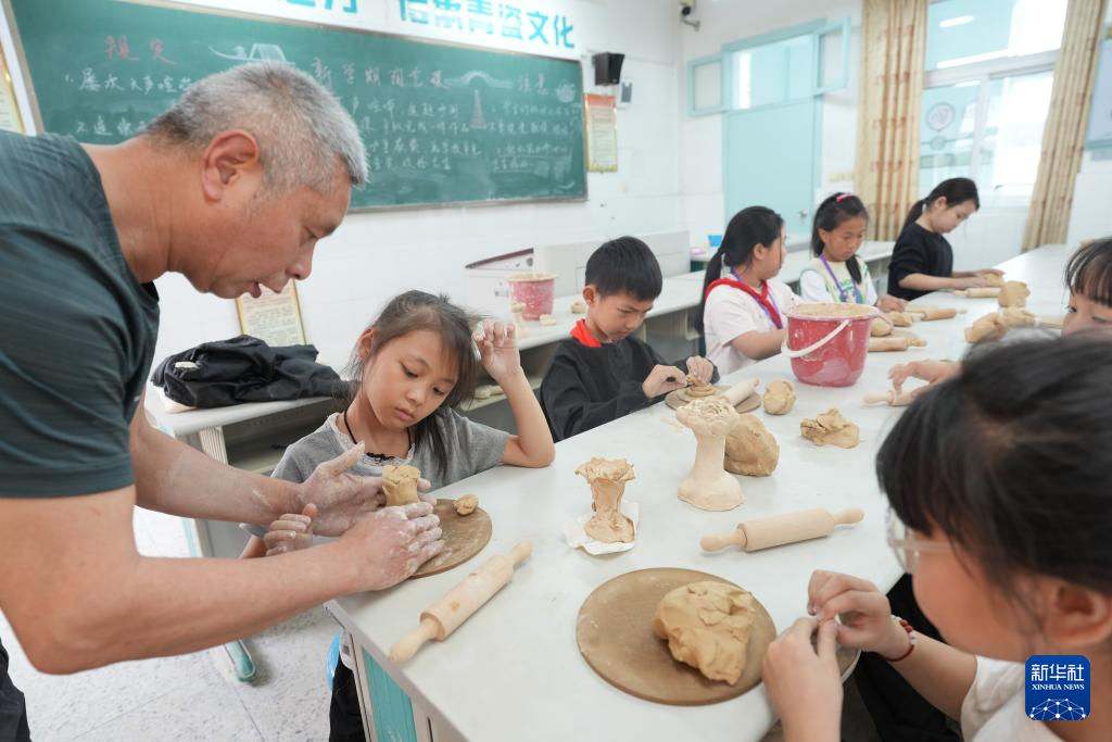 4月17日,施尚剑在慈溪市桥头镇桥南小学的陶艺课上教学。