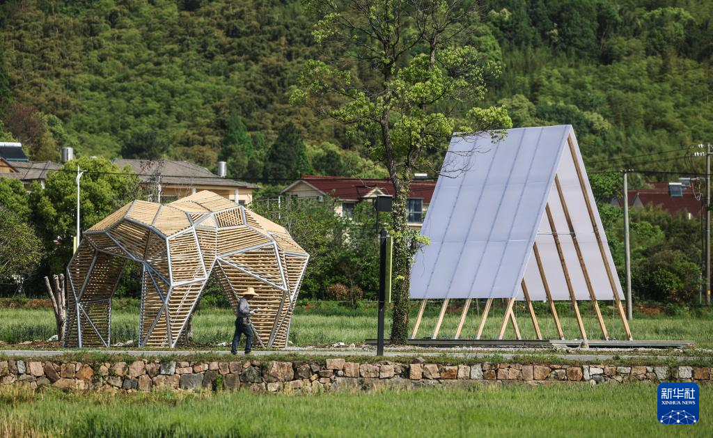 当日,“艺术在南山·大地艺术季”在浙江省湖州市吴兴区东林镇的麦田开幕。活动联手中国多家美术学院的师生作为主创团队,在东林镇田野与村落中创作42件在地性大地艺术作品,以广袤大地为画布、以自然元素为媒介,将艺术装置、景观艺术等多元艺术形式巧妙融入田野与村落,精心构建“没有屋顶的美术馆”,让游客和当地群众在乡野间品味艺术。