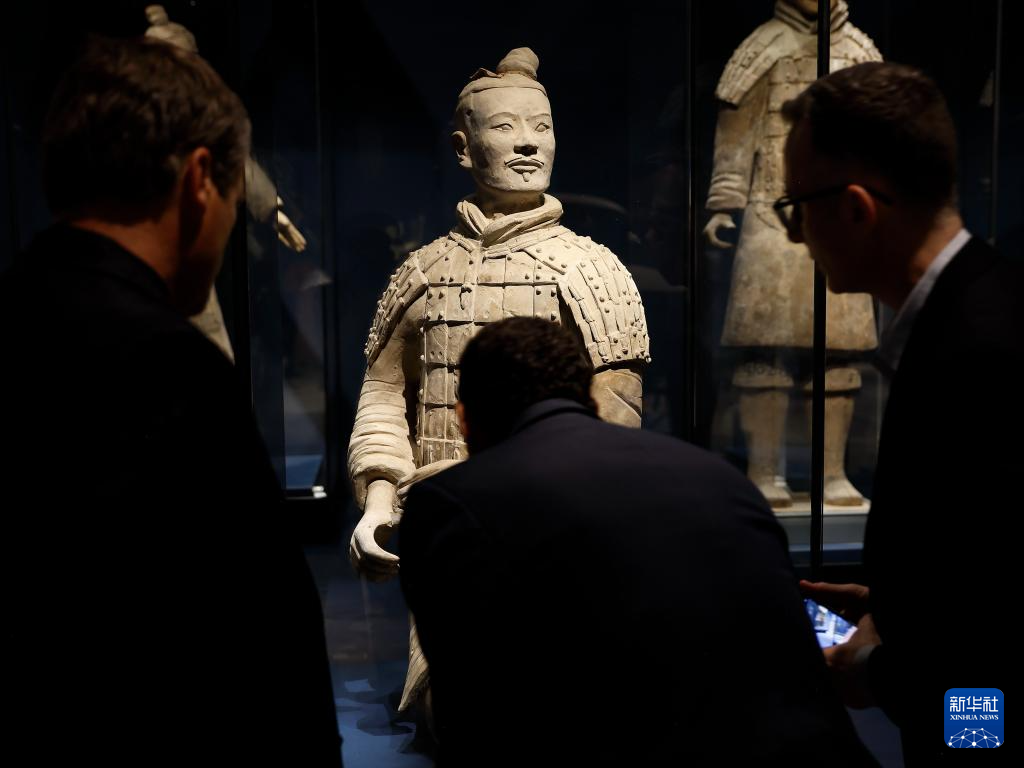 5月22日,嘉宾在美国加利福尼亚州奥兰治县宝尔博物馆欣赏兵马俑展品。