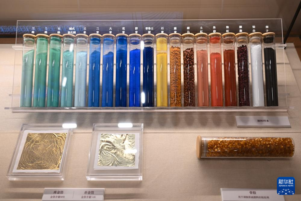 这是5月26日在“彩画千年——中国官式彩画传承与创新展”上拍摄的部分彩画绘制材料。