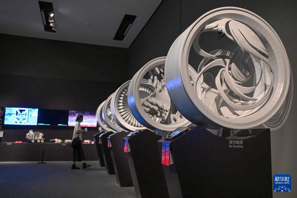 7月2日,观众参观宇宙碰撞交互装置作品。