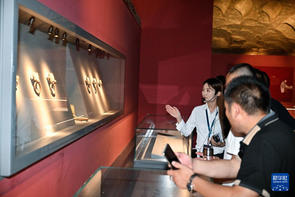 7月2日,在大云山汉王陵博物馆,讲解员介绍《玉得永生——盱眙汉代葬玉文化特展》。