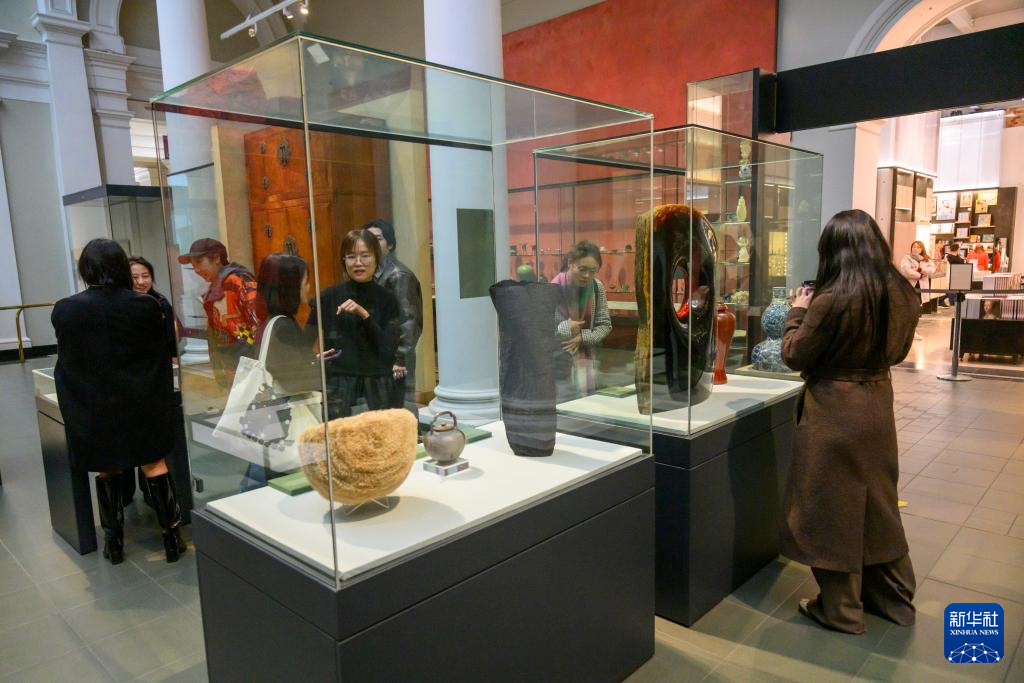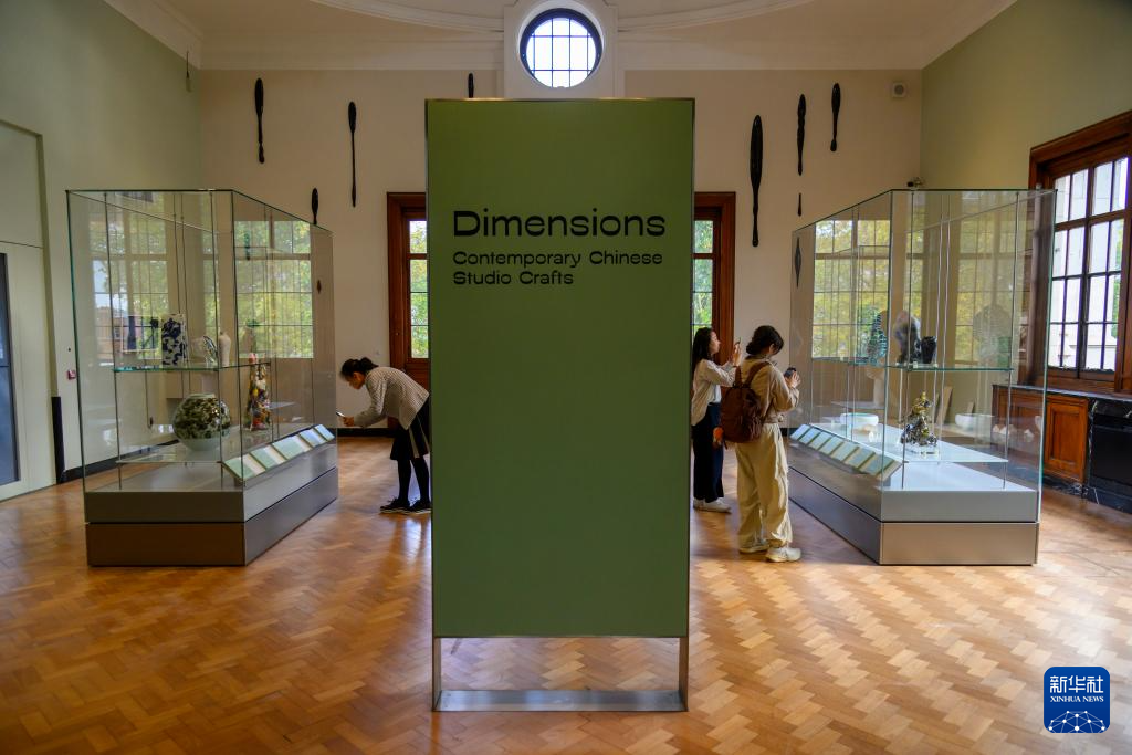 10月27日,在英国伦敦维多利亚与阿尔伯特博物馆(V&A),人们在《多维:中国当代工作室工艺》展览媒体预展上参观。新华社发(雷伊·唐摄)