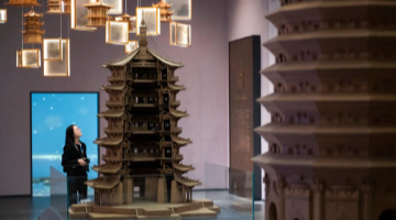 11月17日,民众在拉脱维亚首都里加举行的灯光节上欣赏被照亮的火药塔。