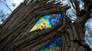 11月17日,民众在拉脱维亚首都里加举行的灯光节上欣赏滨海公园的灯光艺术装置。