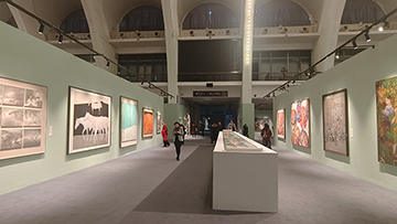 1月3日,参观者在中国考古博物馆展厅中对着展陈文物进行快速写生。