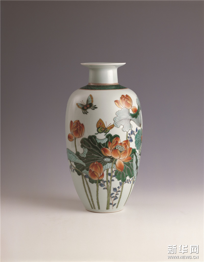 戴荣华 景德镇- 映日荷花别样红瓶 18×18×34.3cm 2002 中国美术馆藏