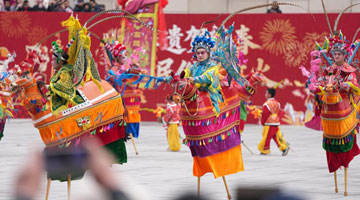 3月2日,人们在江苏省连云港市连云区表演民俗节目。