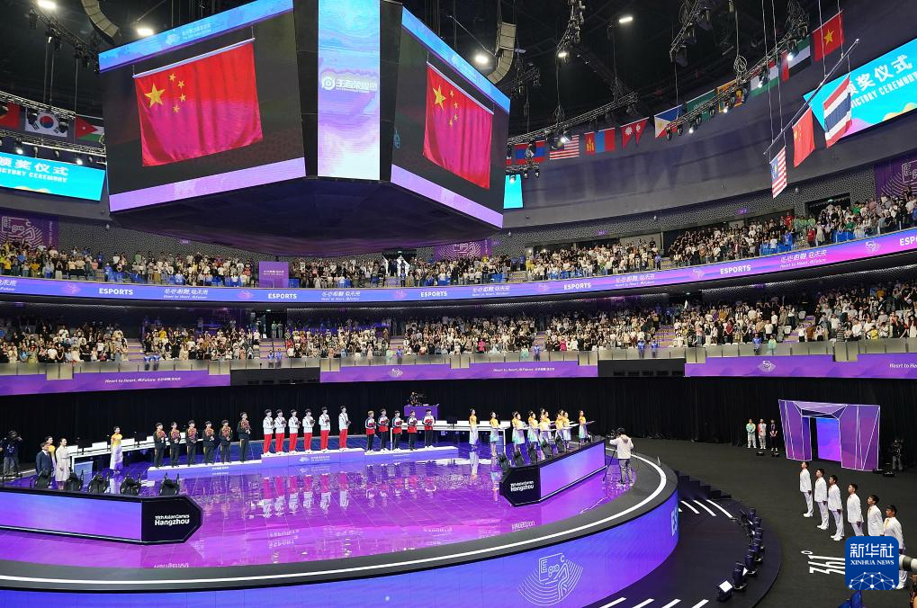 2023年9月26日,在杭州亚运会电子竞技王者荣耀亚运版本决赛中,中国队以2比0战胜马来西亚队,获得冠军。新华社记者 韩传号 摄