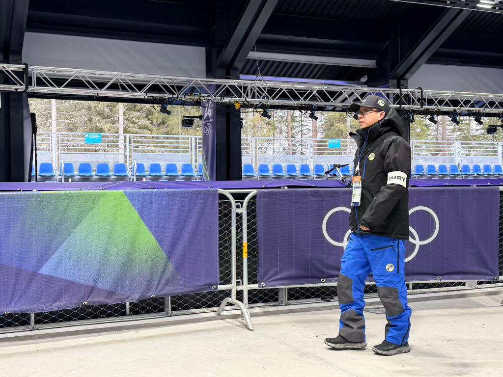 武大伟作为仲裁委员在米兰冬奥会雪橇比赛工作期间