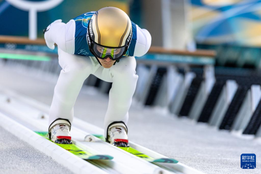 2月17日,奥地利选手兰帕特尔在个人大跳台试跳轮中。