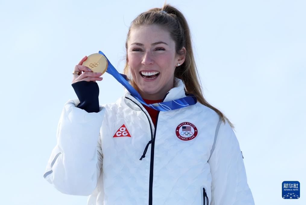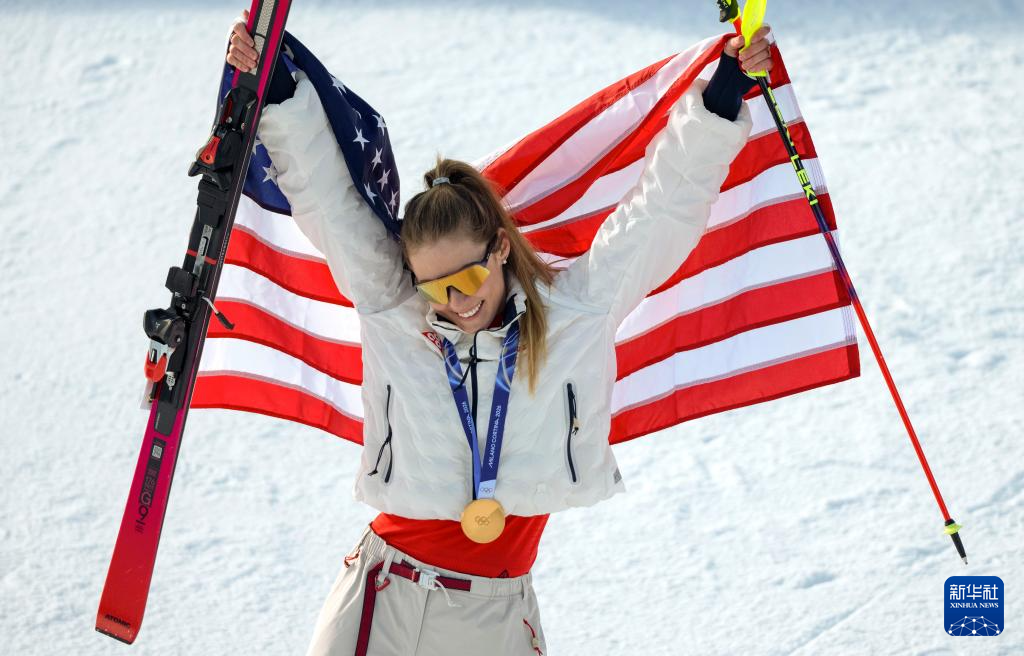 2月18日,美国选手希夫林在第一轮比赛中。她获得冠军。