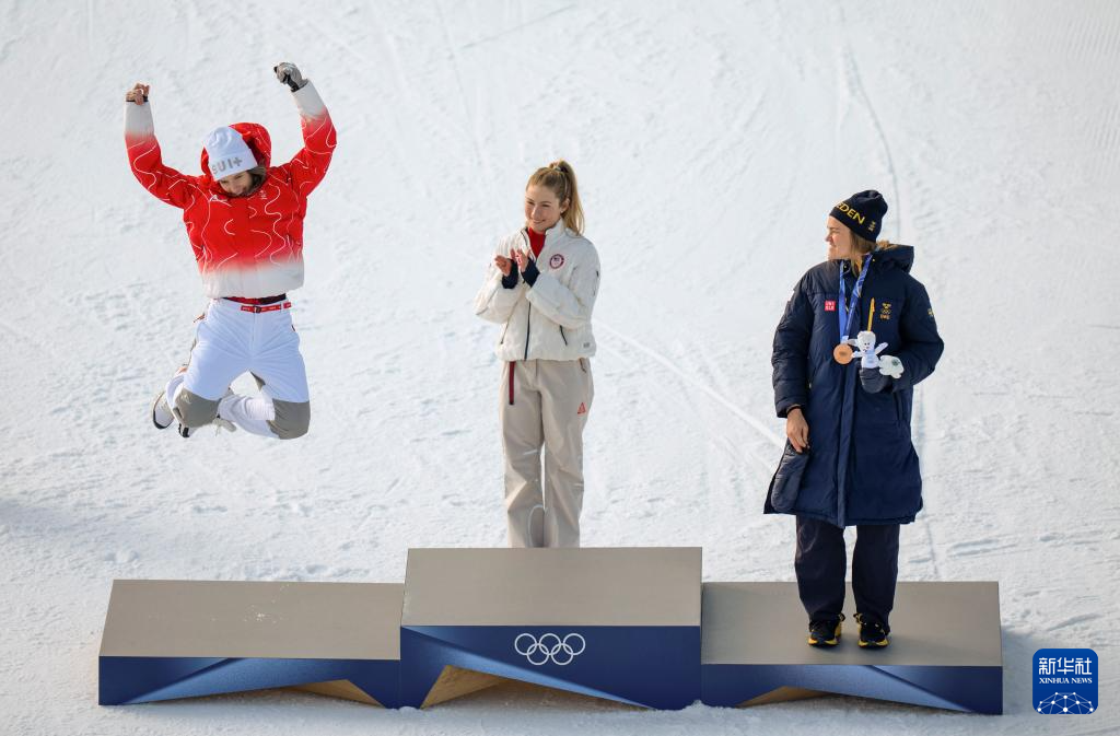 2月18日,冠军美国选手希夫林在颁奖仪式上。