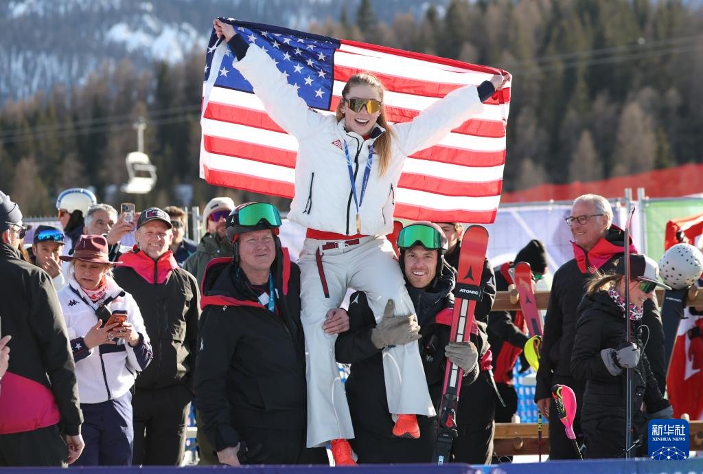 2月18日,美国选手希夫林在比赛后。她获得冠军。