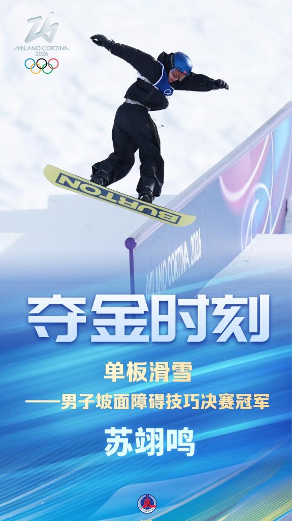 当地时间2月18日,在意大利利维尼奥举行的米兰-科尔蒂纳冬奥会单板滑雪男子坡面障碍技巧决赛中,中国选手苏翊鸣夺得冠军。