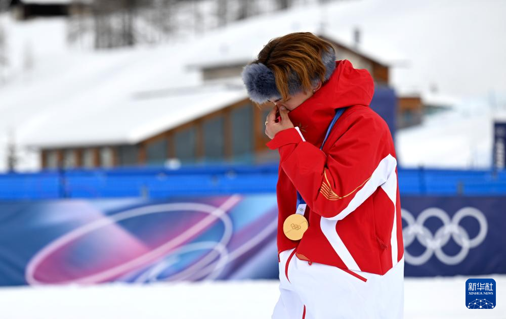 2月18日,冠军中国选手苏翊鸣在颁奖仪式上。