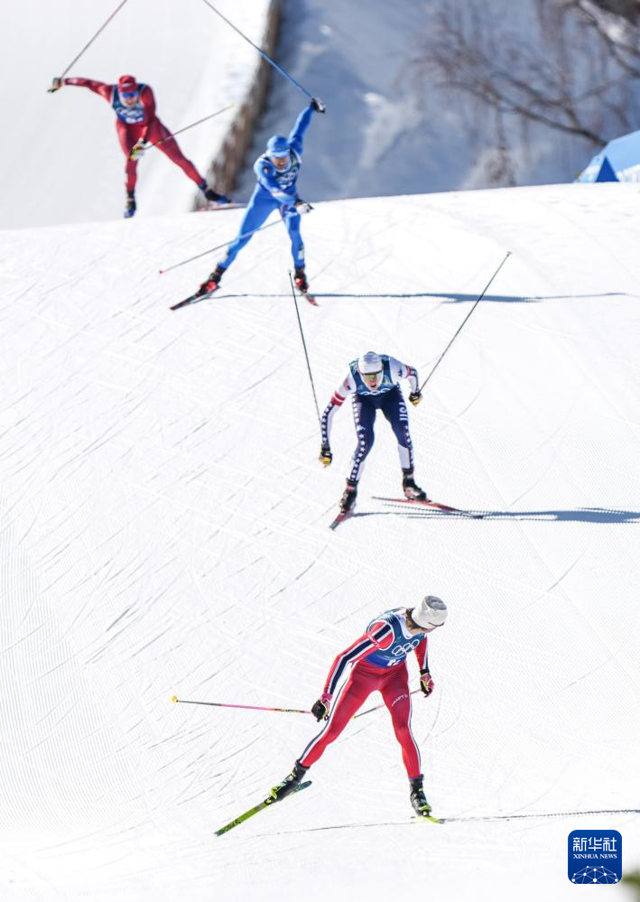 2月18日,挪威队选手克莱博(右一)在比赛中。