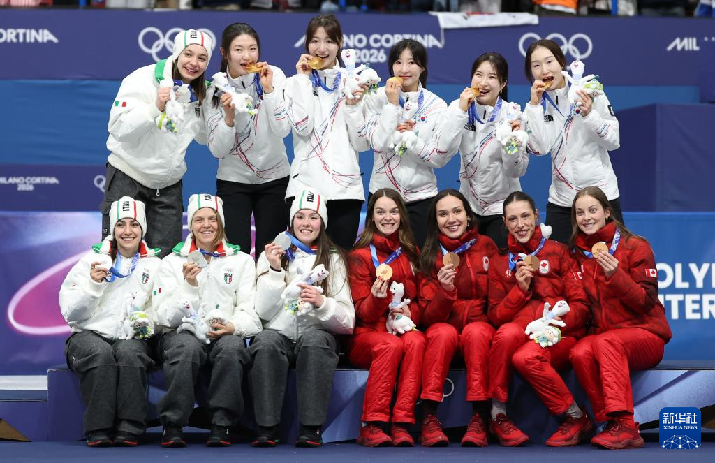 当地时间2月18日,在米兰-科尔蒂纳冬奥会短道速滑女子3000米接力A组决赛中,韩国队、意大利队和加拿大队分获冠、亚、季军。