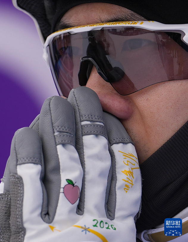 2月20日,李天马在比赛间隙向观众比心。