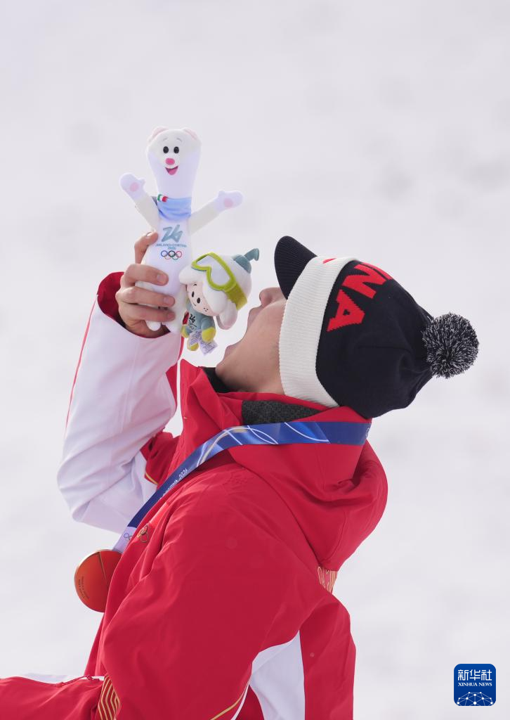 2月20日,冠军中国选手王心迪在颁奖仪式上。