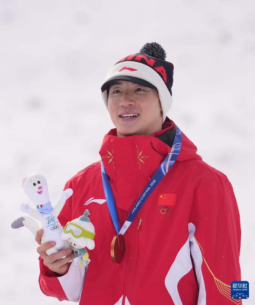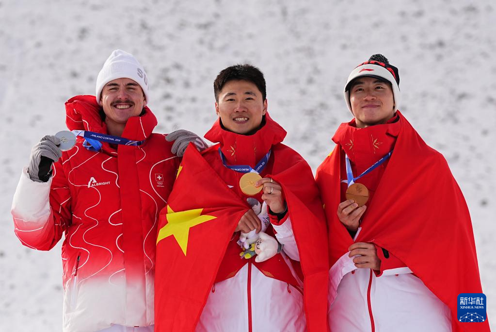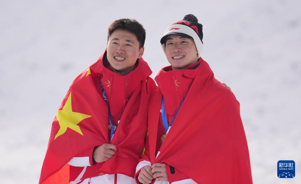 当地时间2月20日,在意大利利维尼奥举行的米兰-科尔蒂纳冬奥会自由式滑雪男子空中技巧决赛中,中国选手王心迪和李天马分获冠军和季军。