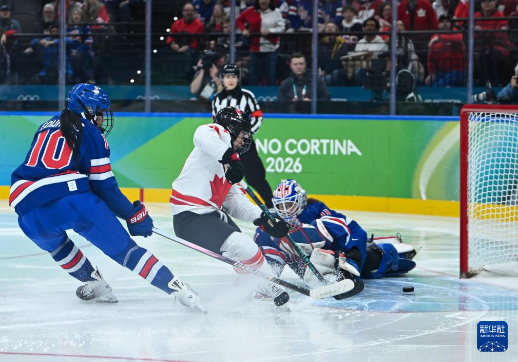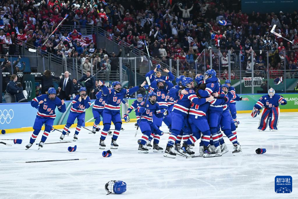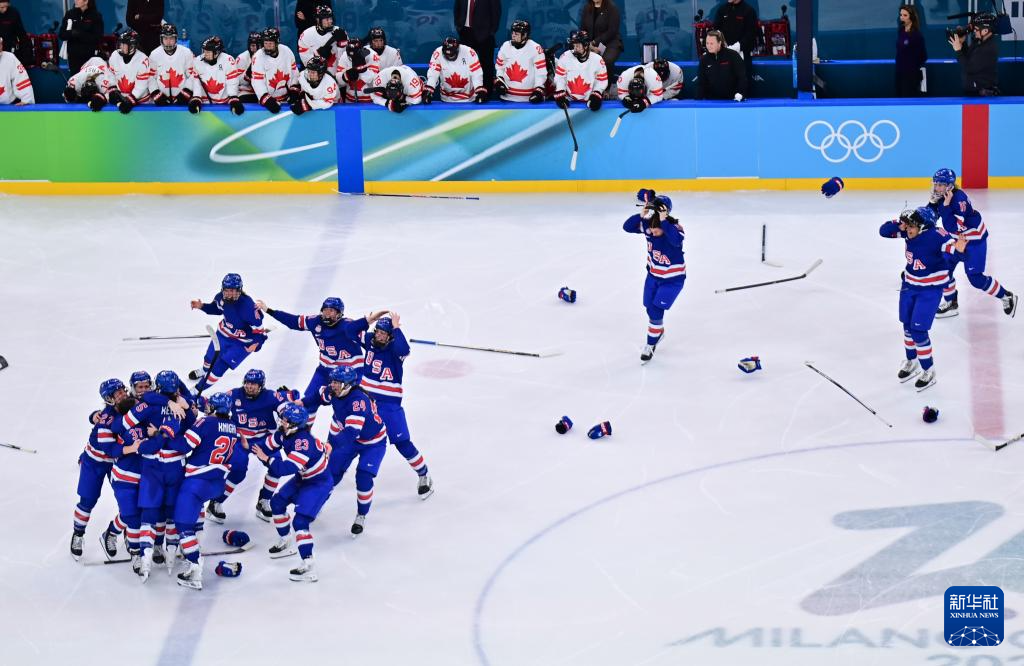 当地时间2月19日,米兰-科尔蒂纳冬奥会冰球项目女子金牌赛在意大利米兰举行,美国队2比1战胜加拿大队,夺得冠军。