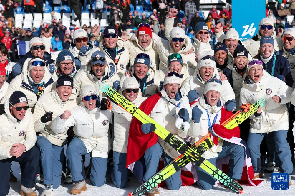 2月20日,挪威选手约翰内斯·戴尔冲线后庆祝。他获得冠军。