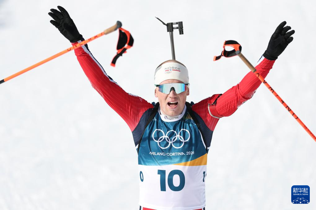 2月20日,挪威选手约翰内斯·戴尔在比赛中冲线。他获得冠军。
