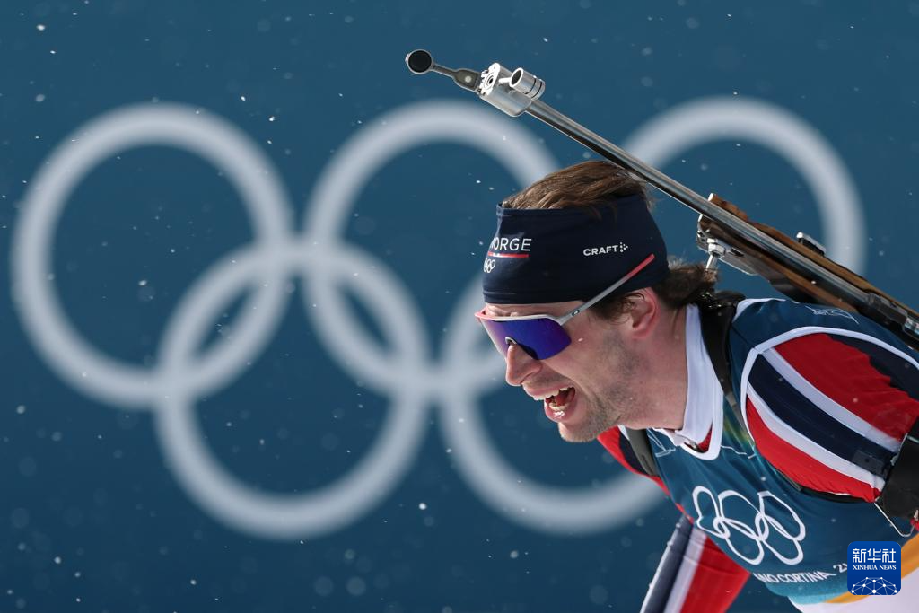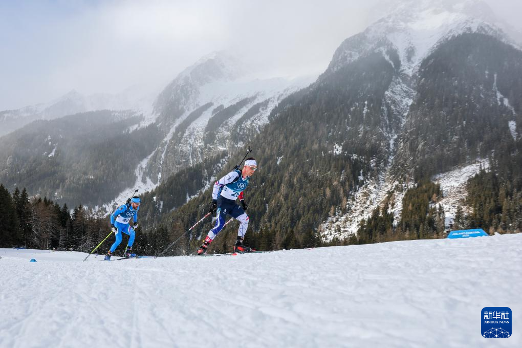 当地时间2月20日,米兰-科尔蒂纳冬奥会冬季两项男子15公里集体出发比赛在意大利安泰塞尔瓦举行。