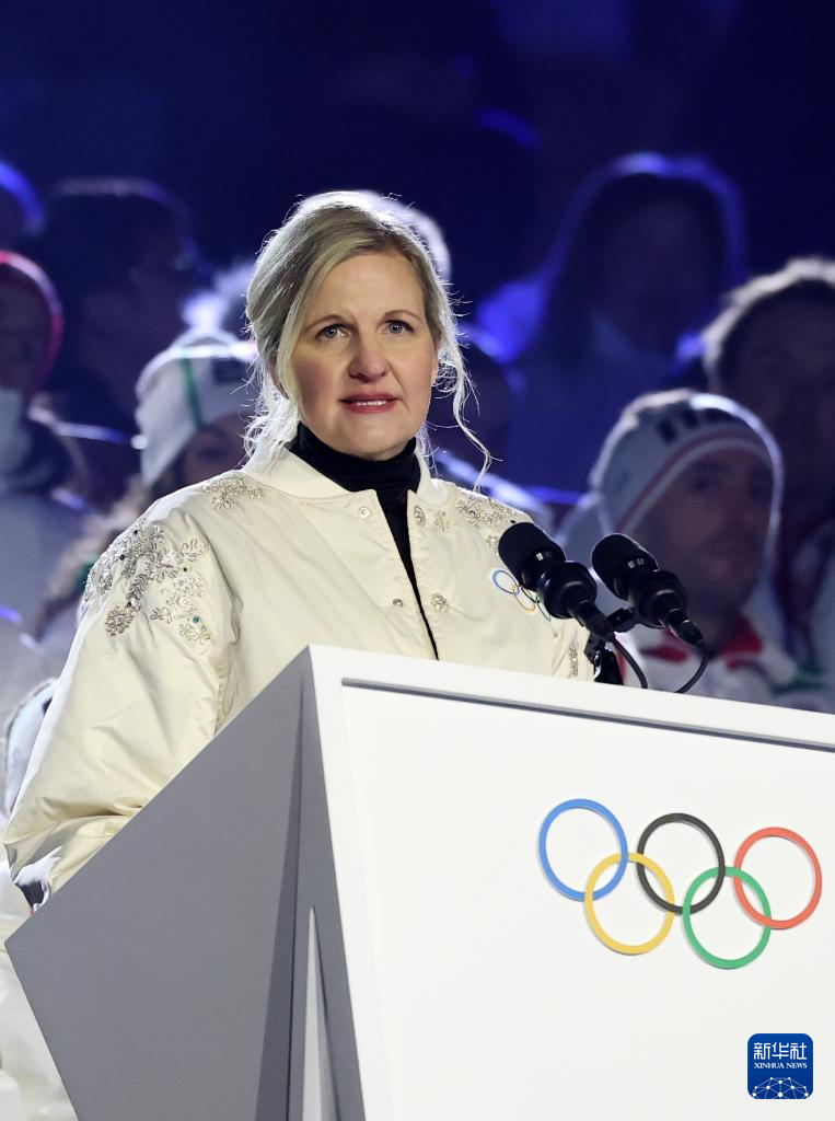 2月22日,国际奥委会主席考文垂在闭幕式上发言。