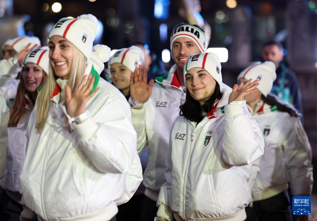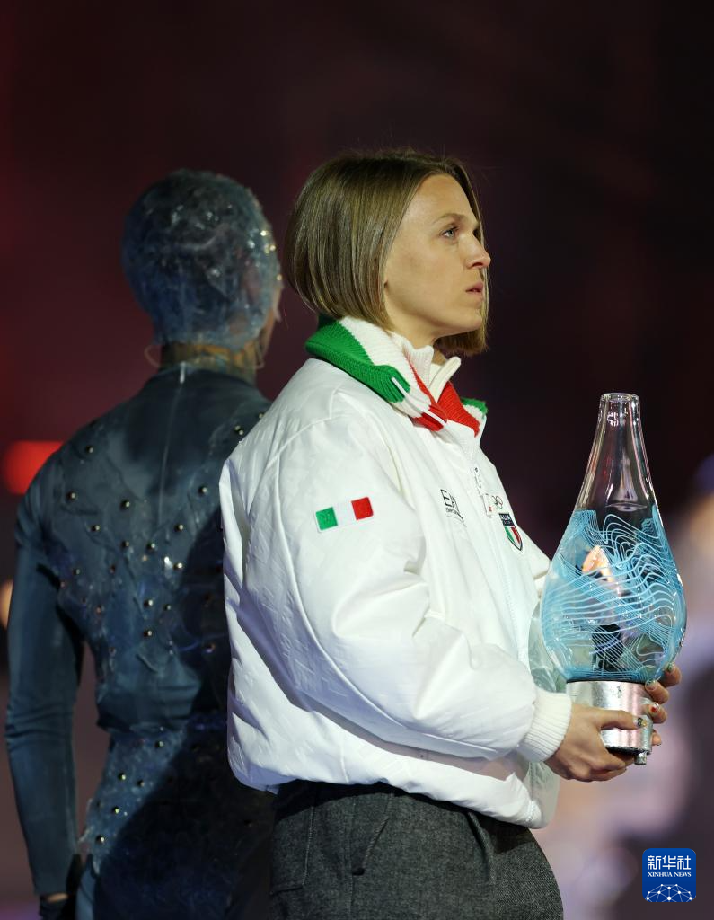 这是2月22日在闭幕式现场拍摄的意大利国旗。