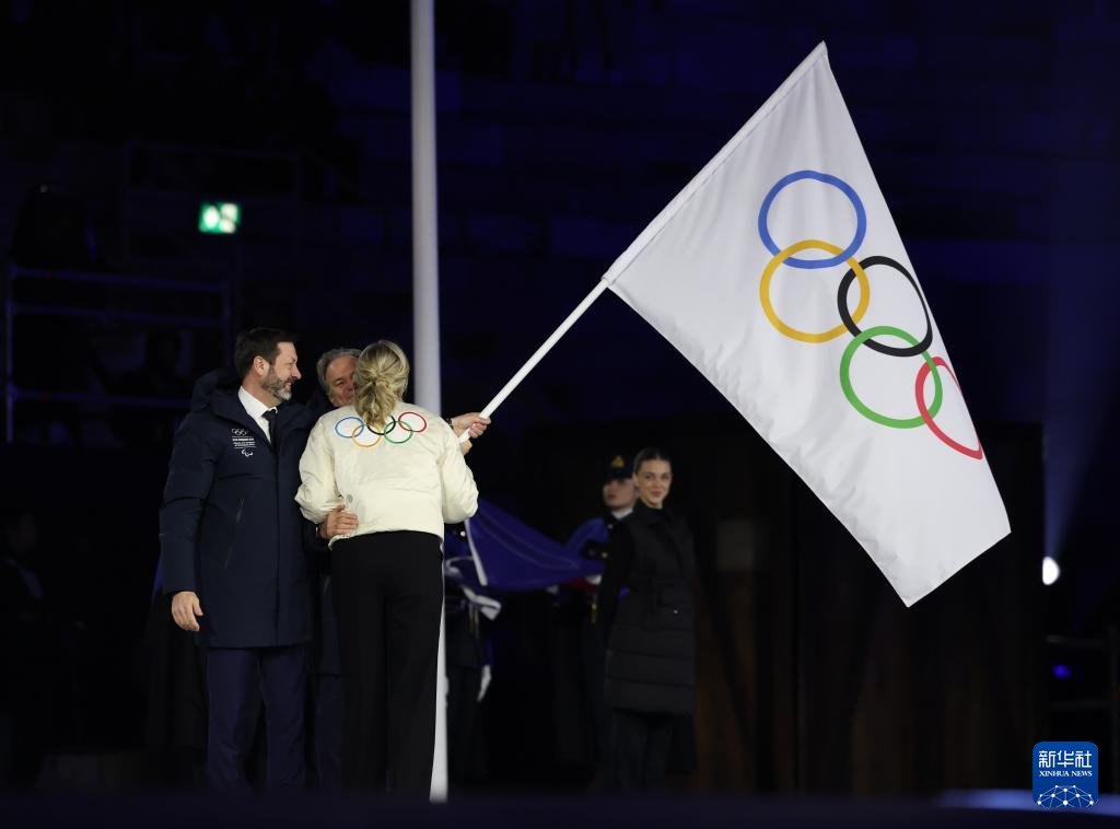 这是2月22日在闭幕式上拍摄的奥林匹克会旗交接仪式。