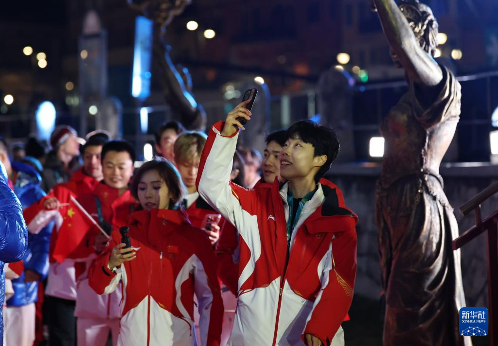 2月22日,中国体育代表团旗手苏翊鸣准备入场。
