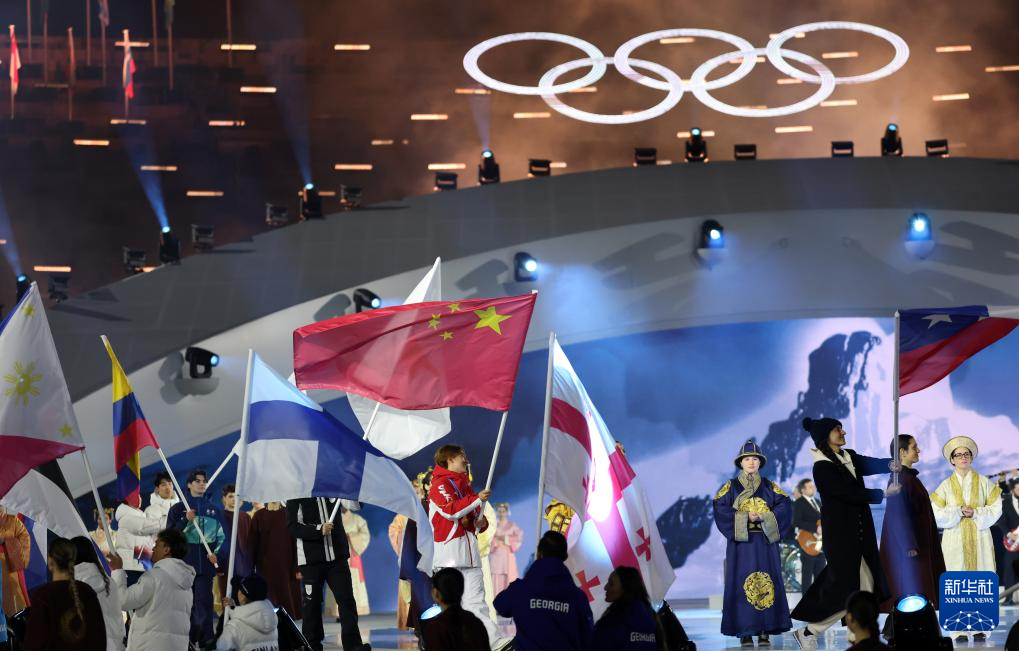 2月22日,各体育代表团旗手在闭幕式上入场。