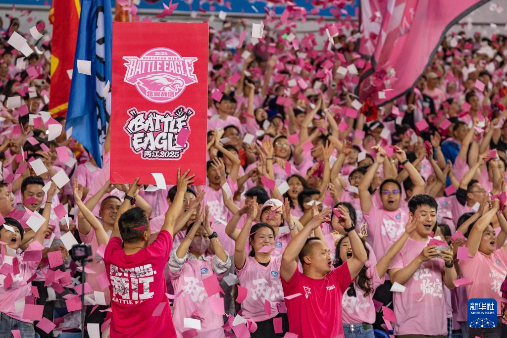 4月12日,两江临空队球迷在开赛前为球队加油。