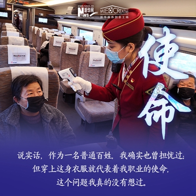孫碩,北京客運(yùn)段京廣高鐵車隊(duì)的列車長之一。進(jìn)入高鐵工作8年時(shí)間,其中7次大年三十在值乘任務(wù)中度過,沒有陪伴家人。2020年春運(yùn),他值乘北京西至福田站的G71/72次復(fù)興號(hào)動(dòng)車組列車,途徑石家莊,鄭州東,武漢,長沙南,廣州南等省會(huì)車站。他的母親作為醫(yī)護(hù)工作者,曾參與過非典時(shí)期的救援任務(wù),他雖不是醫(yī)護(hù)人員,但在這個(gè)特殊時(shí)期服務(wù)于社會(huì),依然感到榮幸。