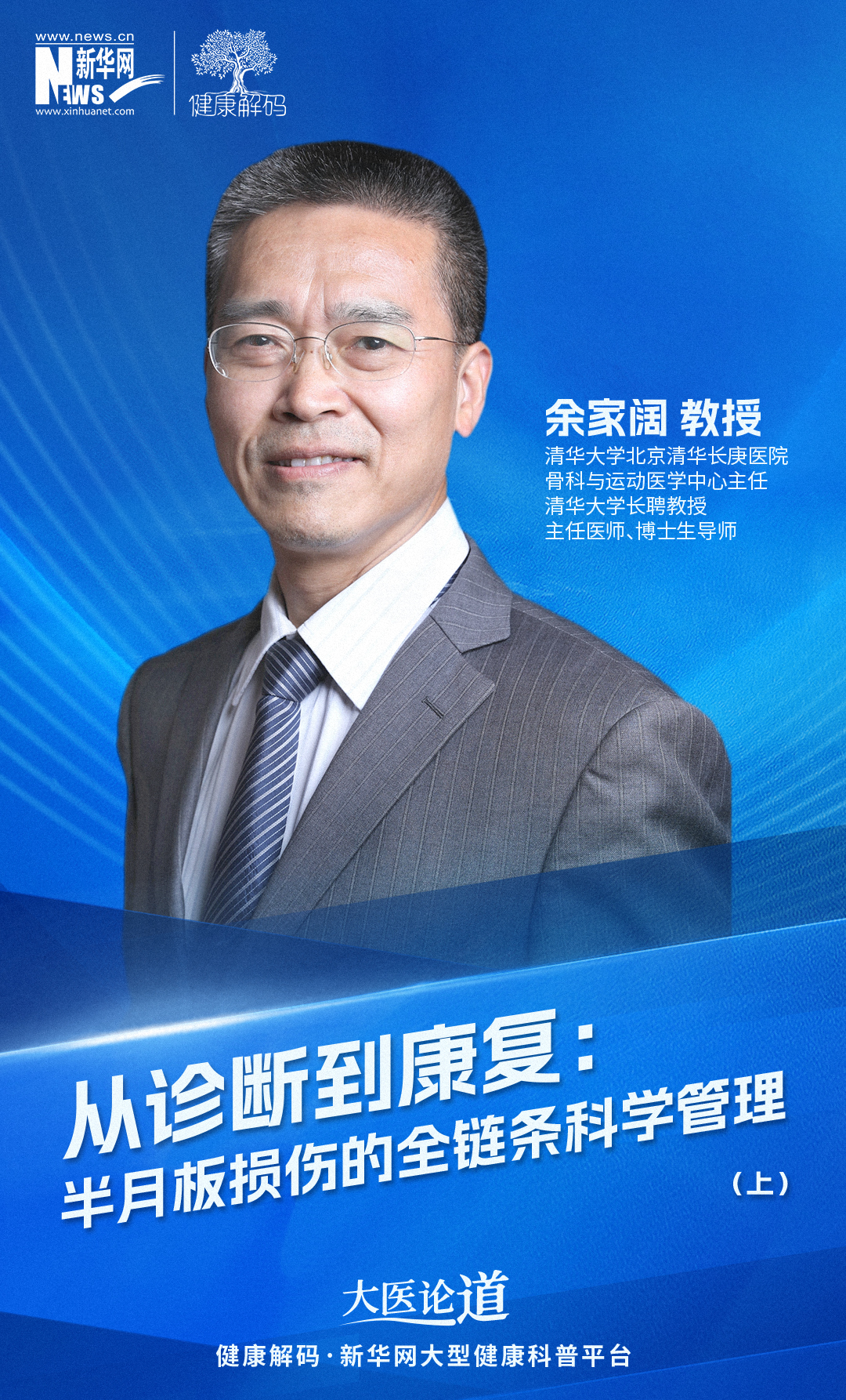 本集节目我们邀请了清华大学北京清华长庚医院骨科与运动医学中心主任、清华大学长聘教授、主任医师、博士生导师余家阔教授分享《从诊断到康复 半月板损伤的全链条科学管理(上)》。