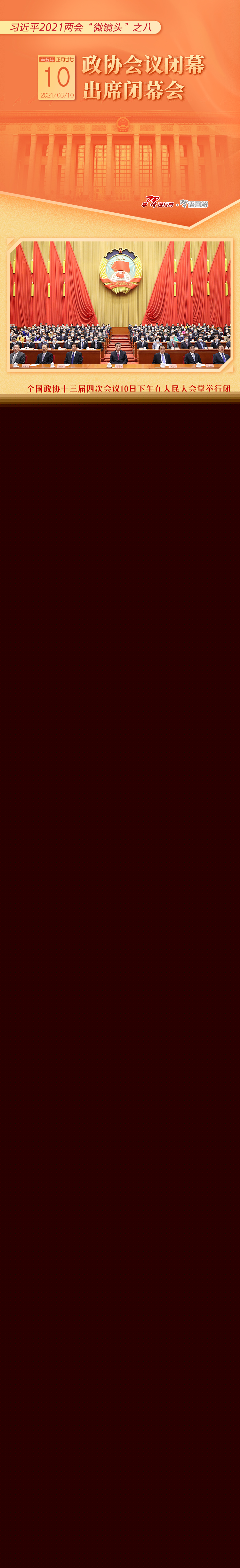 習近平2021兩會“微鏡頭”之八:3月10日 政協(xié)會議閉幕,出席閉幕會