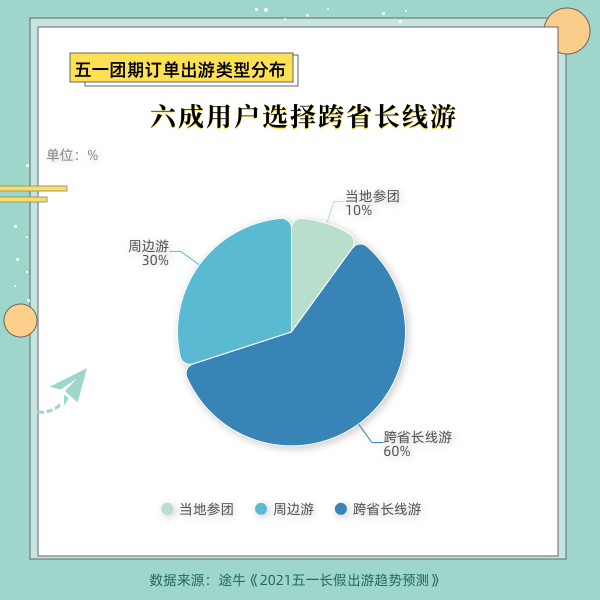 ????? 《報(bào)告》顯示,截至目前,預(yù)訂出游的訂單中,有60%為跨省長線游,其中,有37%的訂單行程天數(shù)超過5天,拼假出游的游客不在少數(shù)。