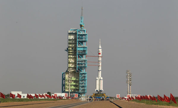 酒泉發(fā)射中心發(fā)射場(chǎng)神舟九號(hào)飛船等待發(fā)射