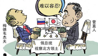 日本首相菅直人日前譴責(zé)俄羅斯總統(tǒng)梅德韋杰夫視察國(guó)后島之舉是“粗暴行徑”,引發(fā)俄方的反彈。如果能解決領(lǐng)土問(wèn)題并締結(jié)和平條約,關(guān)系將取得發(fā)展。”前原誠(chéng)司對(duì)俄政府高官相繼視察北方領(lǐng)土一事向俄方表示遺憾。 …[詳細(xì)]