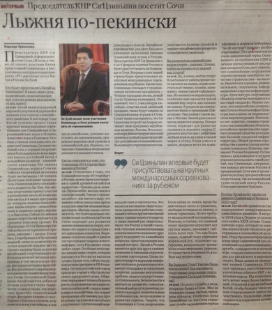 2014年1月28日,中國駐俄羅斯大使李輝就習(xí)近平主席應(yīng)俄羅斯總統(tǒng)普京邀請出席索契冬奧會接受俄政府報紙《俄羅斯報》專訪。