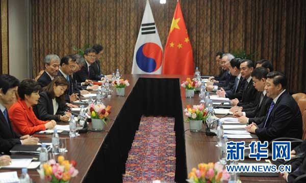 ????習(xí)近平指出,中韓互為重要鄰國,有著相通的美好夢想和相同的改革目標(biāo)。加強(qiáng)中韓合作,可以更好惠及兩國人民。雙方要繼續(xù)保持密切高層交往,加快推進(jìn)中韓自由貿(mào)易協(xié)定談判,爭取早日達(dá)成協(xié)議。雙方還要就重大國際和地區(qū)問題加強(qiáng)溝通和協(xié)調(diào),維護(hù)雙方共同利益。