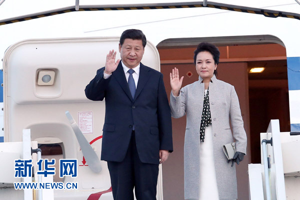 ????當?shù)貢r間25日下午6時40分許,習(xí)近平乘坐的專機抵達里昂機場。法國外長法比尤斯受法國總統(tǒng)奧朗德指派專程前來迎接習(xí)近平和夫人彭麗媛。羅訥省省長卡朗科、里昂市長科隆也到機場歡迎。